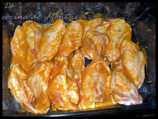Pre-calentamos el horno 180º-190º, metemos las alas de veinte veinticinco minutos, hasta que estén crujientes.