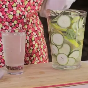 Pasamos por un colador y vertimos en una jarra con el resto de agua mezclamos bien.