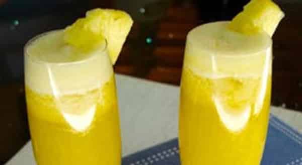 Agua de Piña y Albahaca Ingredientes: 8 rebanadas de piña descorazonadas 2 litros de agua 10 hojas de albahaca fileteada ½ taza de azúcar morena 2 tazas de hielo 1 cucharadita de cardamomo. Licuamos la piña, el agua, la azúcar, el hielo y el cardamomo. La albahaca la colocamos al último en el agua. Servimos fría. También te puede interesar Coctel de lichi y menta Batido de Plátano y Soja Batido Plátano Kiss Cubitos de melocotón Batido de plátano y café