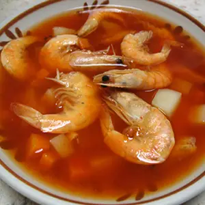 Licuamos la salsa cátsup con el jugo Maggi, el chile chipotle y la sal, hasta tener una salsa homogénea. Vertimos sobre los camarones y cocinamos, sin dejar de mover, hasta que la salsa empiece a hervir. Reducimos el fuego a bajo y cocinamos unos minutos más, hasta que la salsa espese.