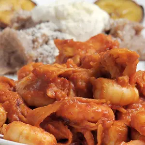 Servimos los Camarones a la diabla con una porción de arroz blanco.