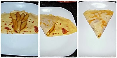 Cortamos las creps por la mitad, ponemos las manzanas en medio y doblamos por ambos lados como la foto, poner una o dos por comensal.