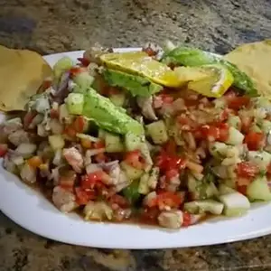 Metemos en una bolsa de plástico por 10 minutos y les retiramos la piel quemada, y enjuagamos en agua fría. Quitamos las semillas y cortamos los chiles en rajas. Reservamos las rajas de uno de los chiles para decorar.