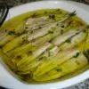 1. Primero sofreimos la cebolla en juliana a fuego lento. Cuando empiece a estar transparente añadimos el ajo picadito y las anchoas en trocitos pequeños también, y continuamos la cocción unos minutos hasta que las anchoas se deshagan.