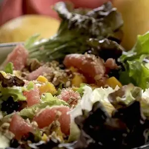 Para el relleno: Cortamos el surimi en cubos pequeños, fileteamos las cebollas cambray con el rabo, cortamos la manzana en tiras delgadas, la zanahoria en juliana y picamos finamente el apio. Reservamos.