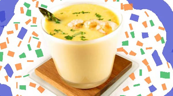 Servimos acompañando la sopa con las gambas peladas y ligeramente sofritas en una sartén con el aceite de oliva y sal.