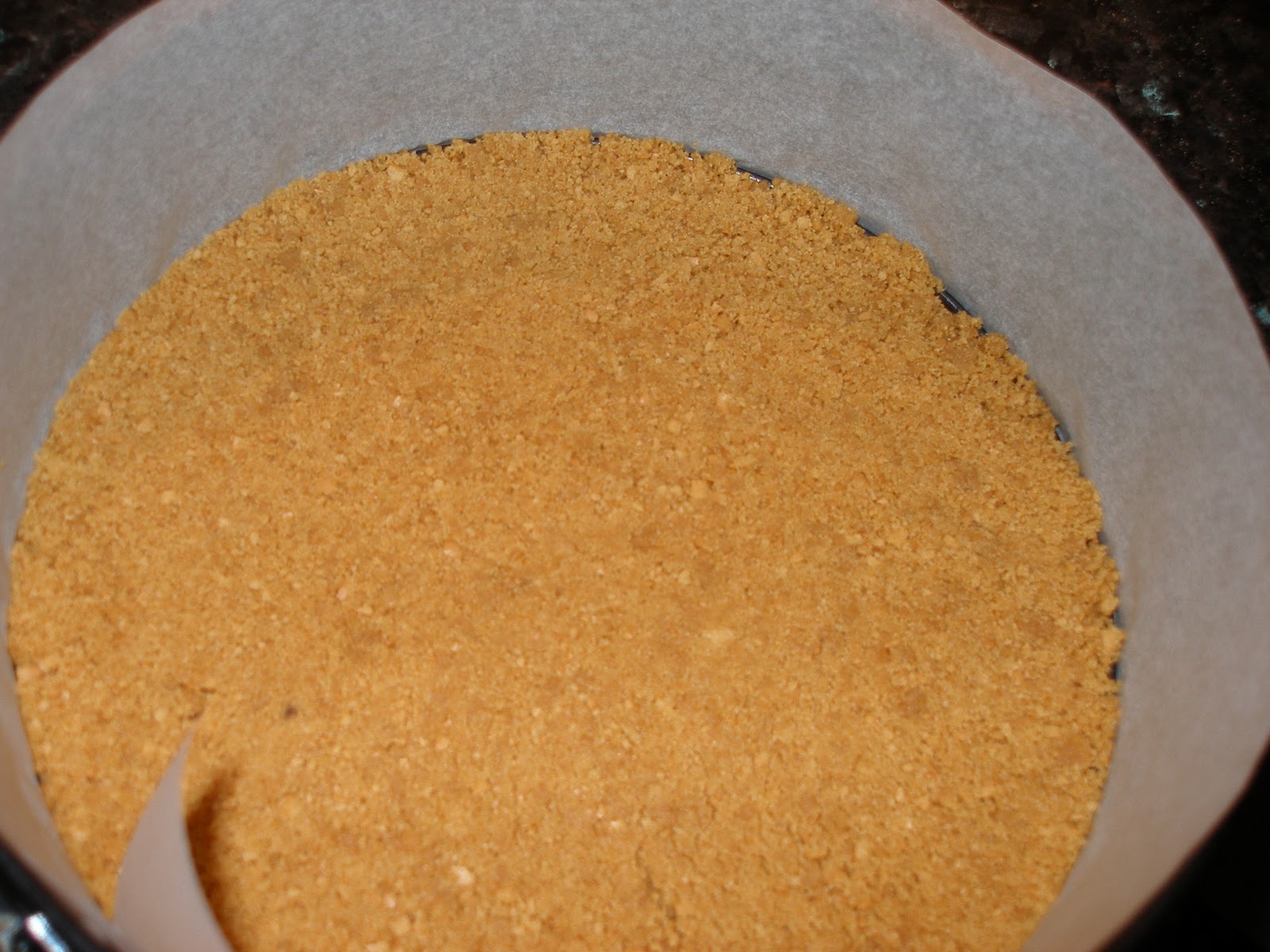 Cubrir el fondo del molde apretando lo máximo posible. Como veis en la foto le pongo en el lateral papel de horno para desmoldar mejor, esto se deja en el frigo.