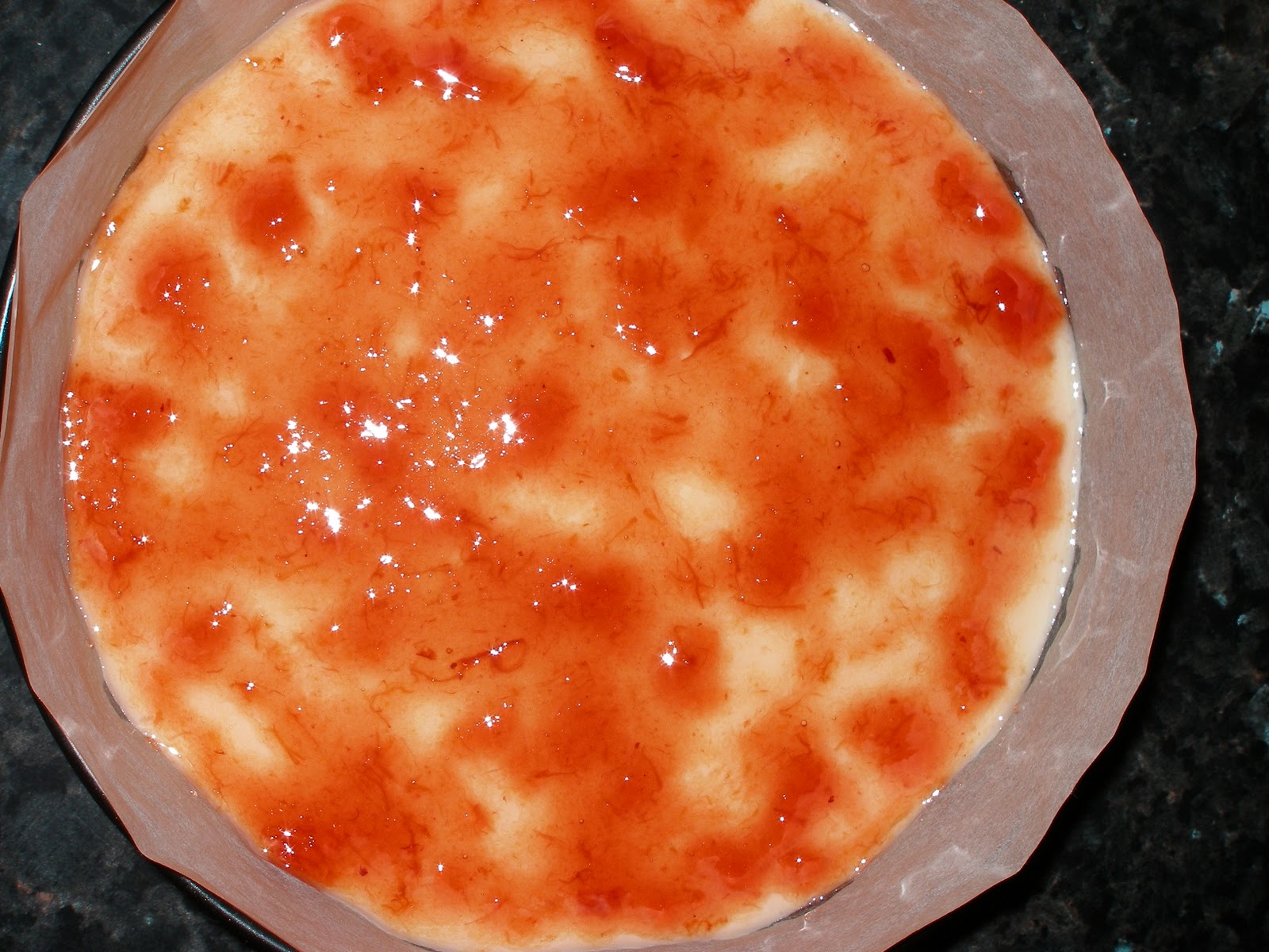 Cuando se haya enfriado cubrir la parte de arriba con la confitura de ciruela. Podéis utilizar otro tipo de confitura, la que mas os guste.