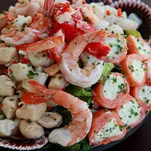 Servimos las Tortitas con Camarones calientes acompañadas de arroz y una fresca ensalada de lechuga.